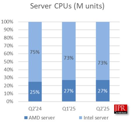JPR:2025 年 Q2 全球客户端 CPU 出货量同比增长 13%,服务器 CPU 增长约 22%